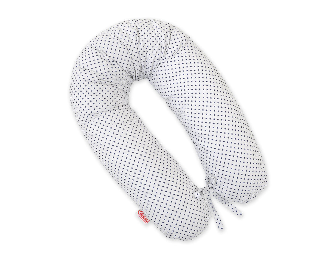 Zwangerschapspillow - Langere, afneembare hoes - Marineblauwe stippen op wit De Relaxing Pillow Longer uit...