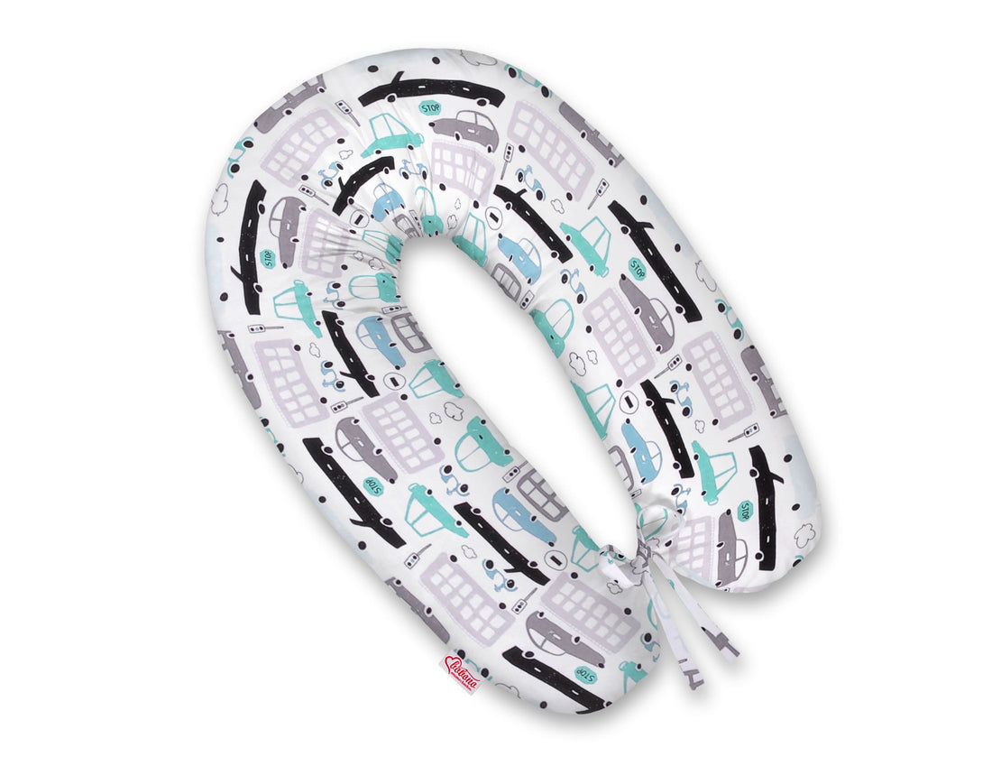 Zwangerschapskussen, voedingskussen, optimale ondersteuning – 170 cm – grijs/turquoise auto's