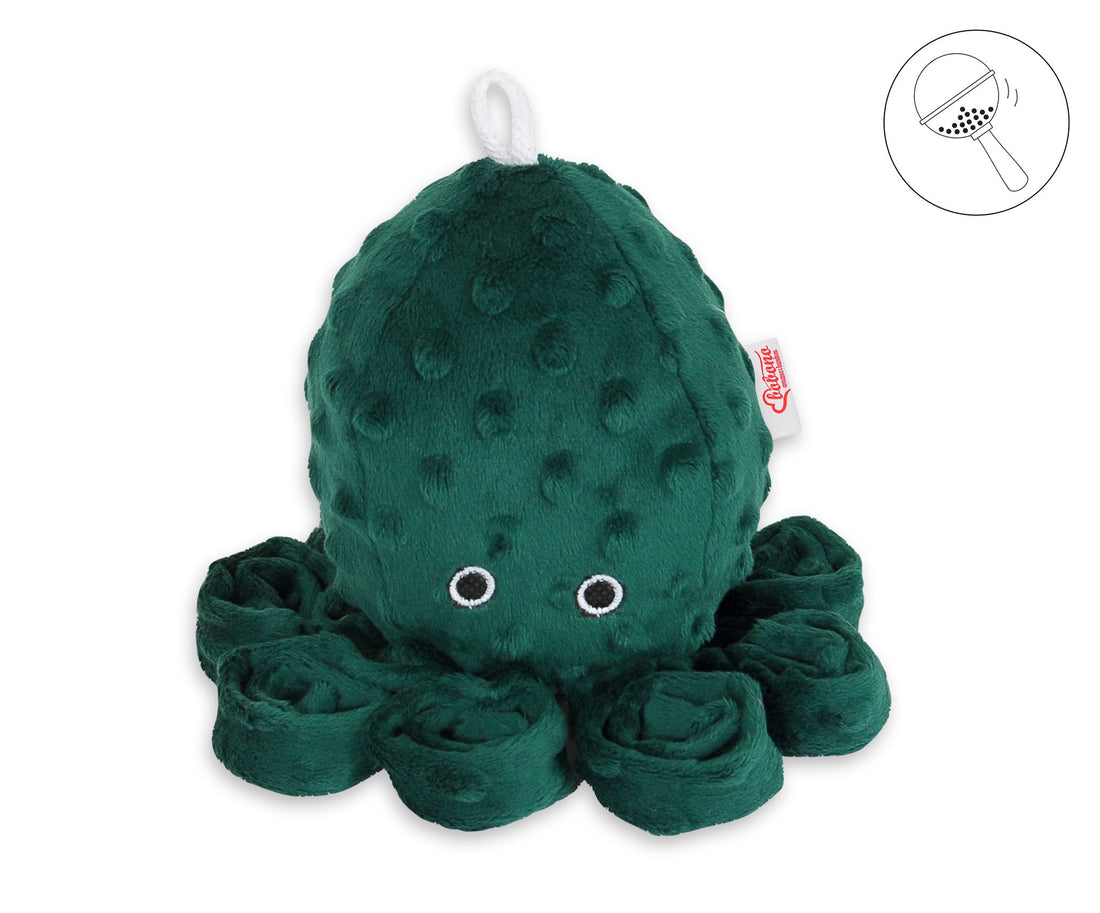 Zachte Octopus met Rammelaar - Flessengroen - Stippen Minky Deze grappige en knuffelbare octopus is...