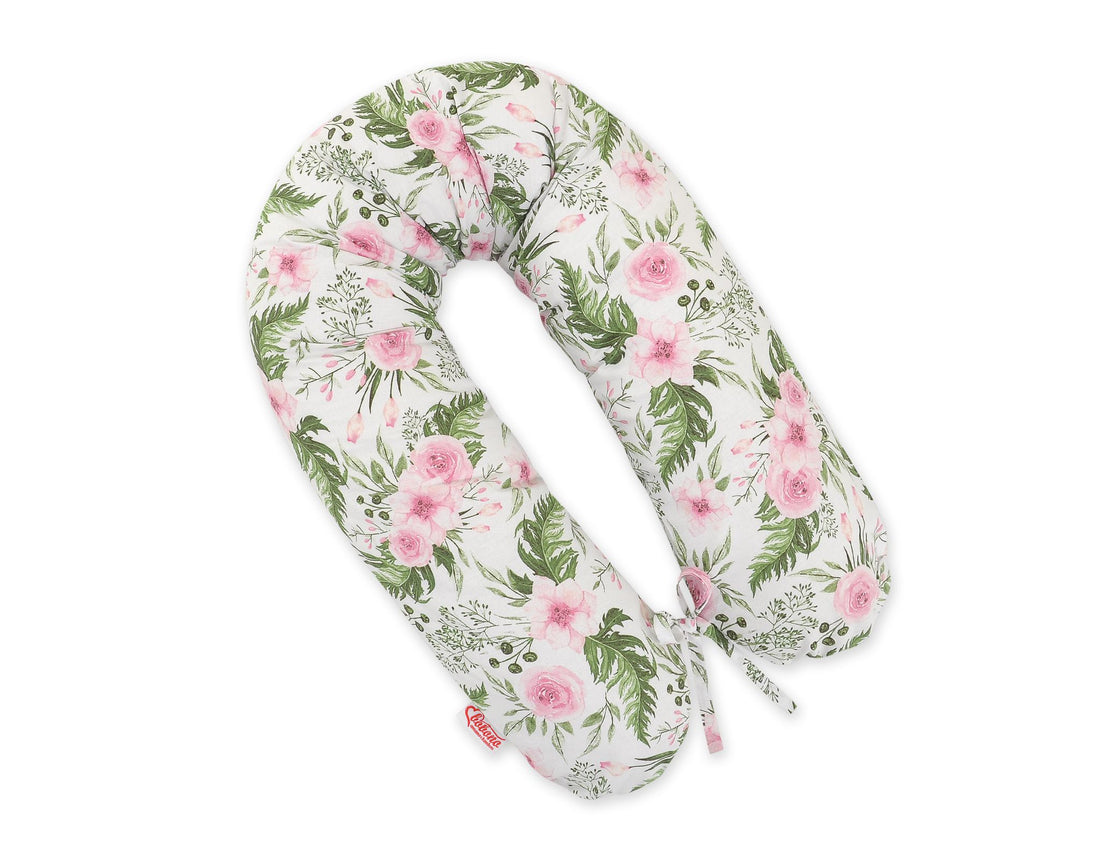 Zwangerschapskussen - body pillow - optimale ondersteuning - afneembare hoes pioenrozen