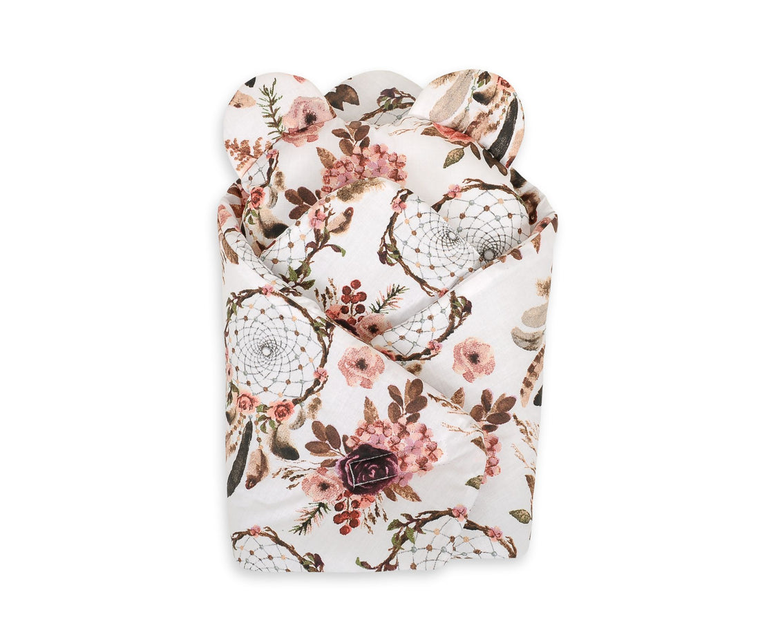 Zwachtelkegel met Kussen voor Poppen - Bloemen Dromenvangers Een prachtige zwachteldoek voor poppen, perfect passend...