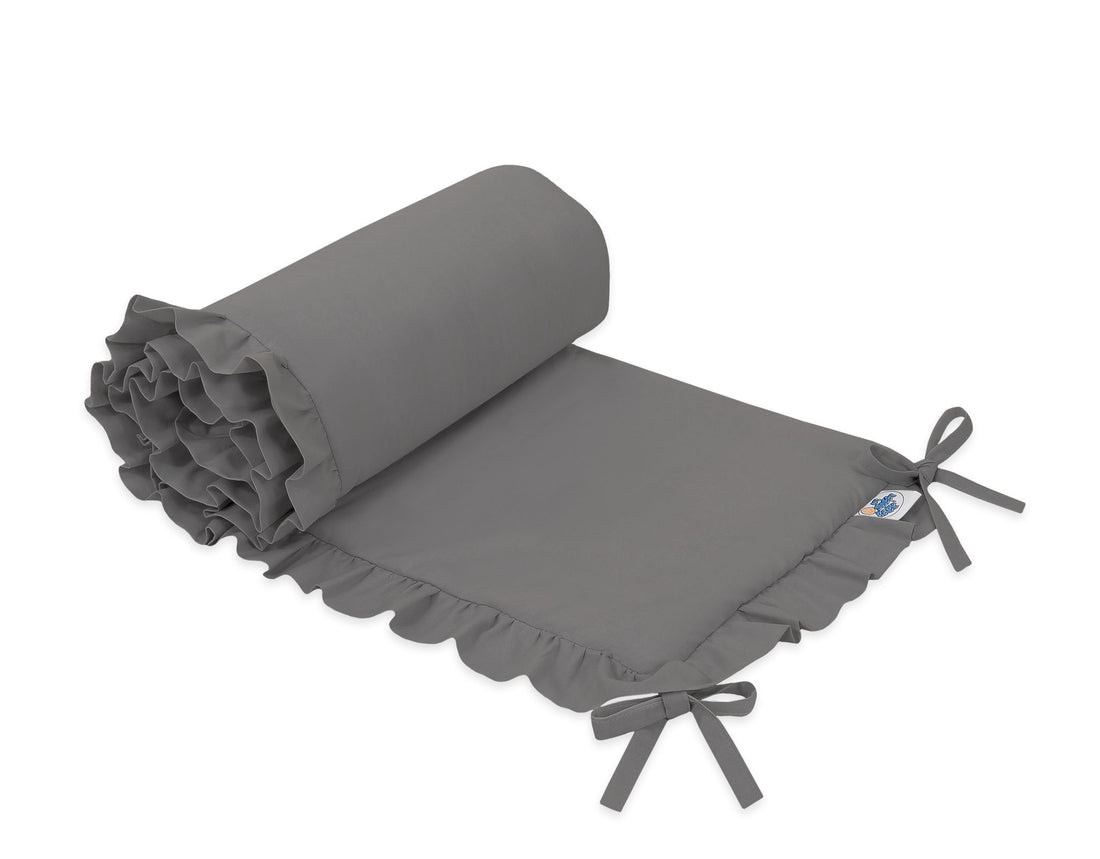 Universele baby bedbumper met volant - antraciet Deze universele babybedbumper met decoratieve volant beschermt je...