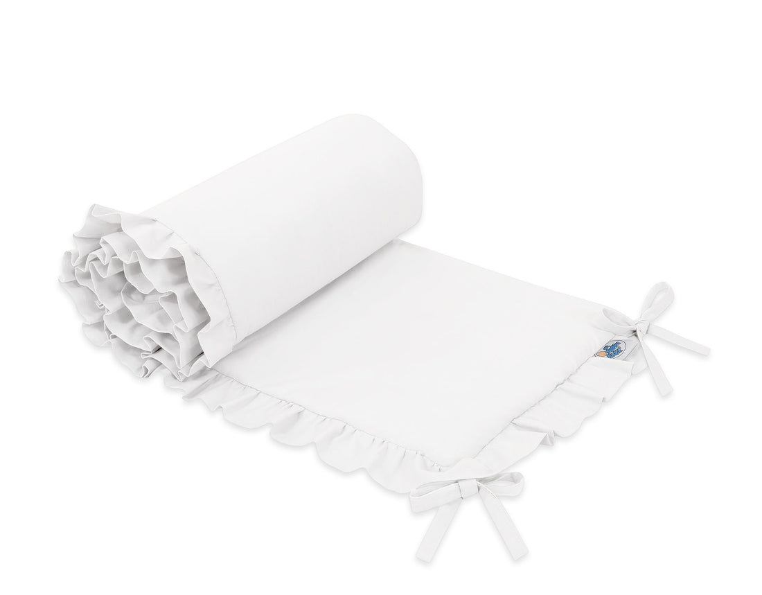 Baby bedbumper - bedomranding - anti-allergisch, zachte bescherming voor wieg, met ruches, wit