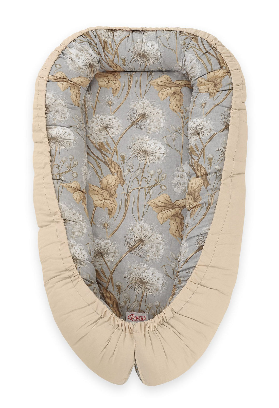 Baby Nest Tweezijdige Premium Cocoon voor Baby’s BOBONO - Paardenbloemen Grijs/Beige Ontdek het comfortabele en...