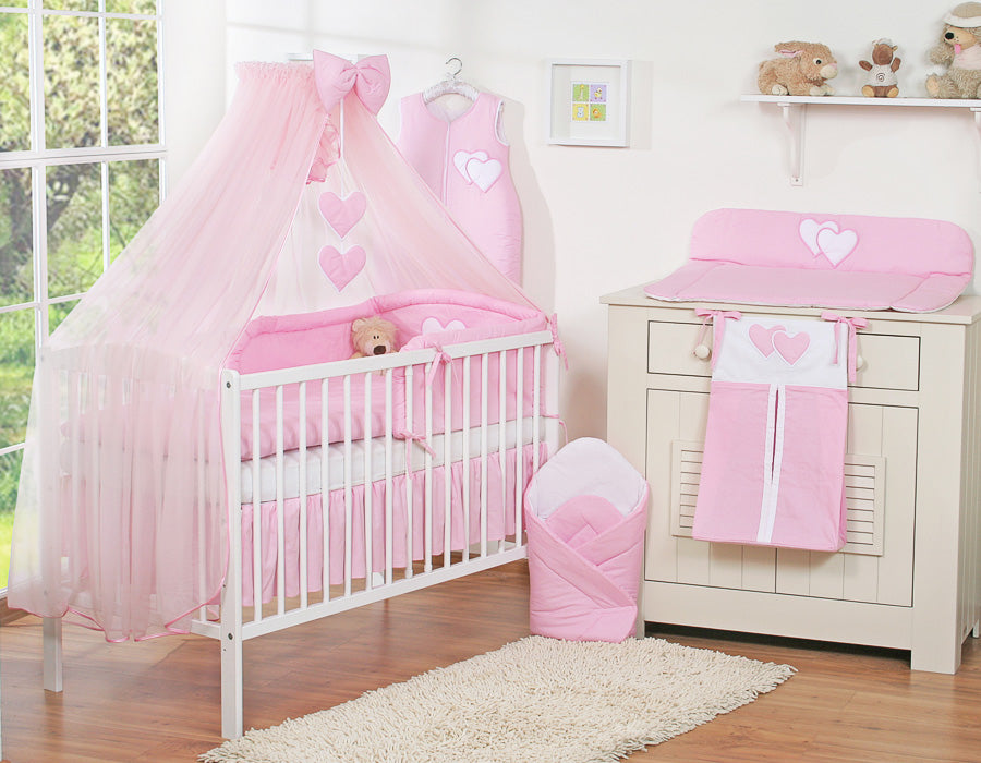Babybeddengoed 5-delig met muskietennet – Hanging Hearts Roze Geniet van een heerlijke rust in deze...