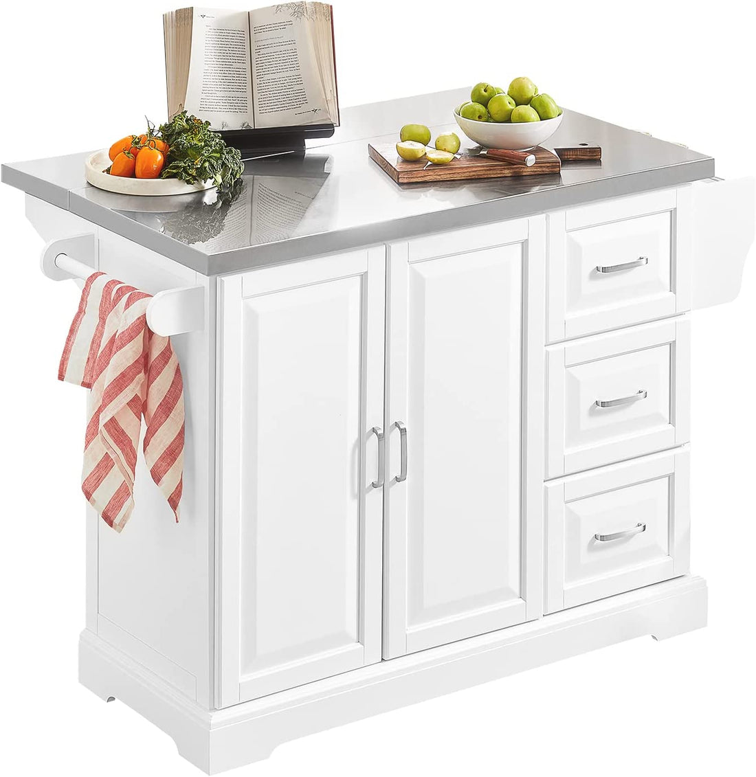 Kenmerken: Modern design keukeneiland met uitschuifbaar roestvrijstalen werkblad, 3 laden, 1 kast met interne verstelbare...