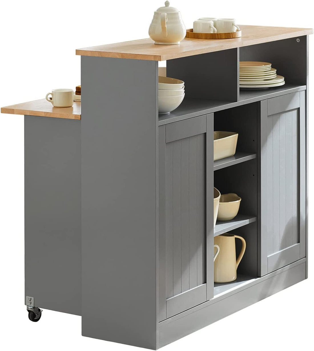 Uitschuifbare keukeneilandkeuken - Kast Sideboard Kitchen - Opbergwagen met werkblad van rubberhout