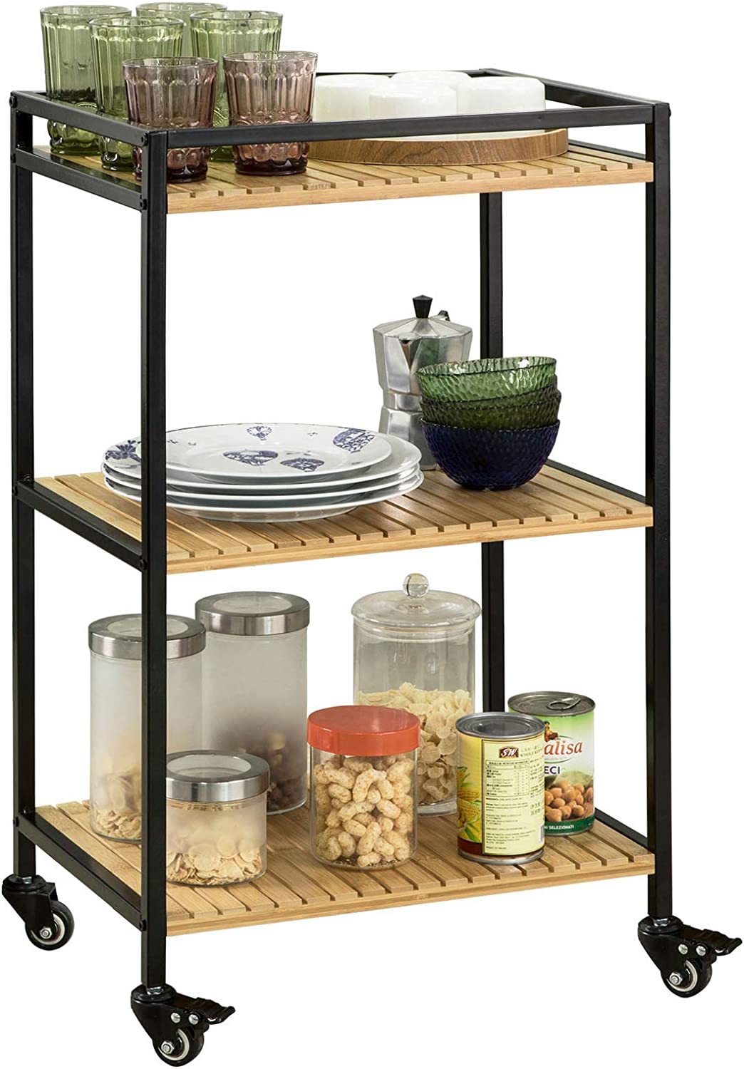 3-laags metalen bamboe serveerwagen - keukenwagen - keukenplank