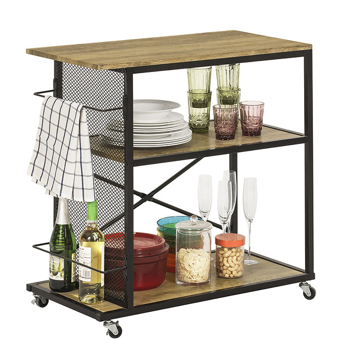 Keukentrolley - Dressoir - Serveerwagen - Keukeneiland - Mobiel opbergmeubel met handdoekhouder - 82cm x 88cm x 46cm