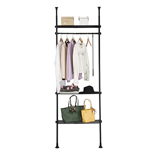 Verstelbare kledingkastorganizer, kledingplanksysteem, ophangrail, telescopisch kledingrek, zwart