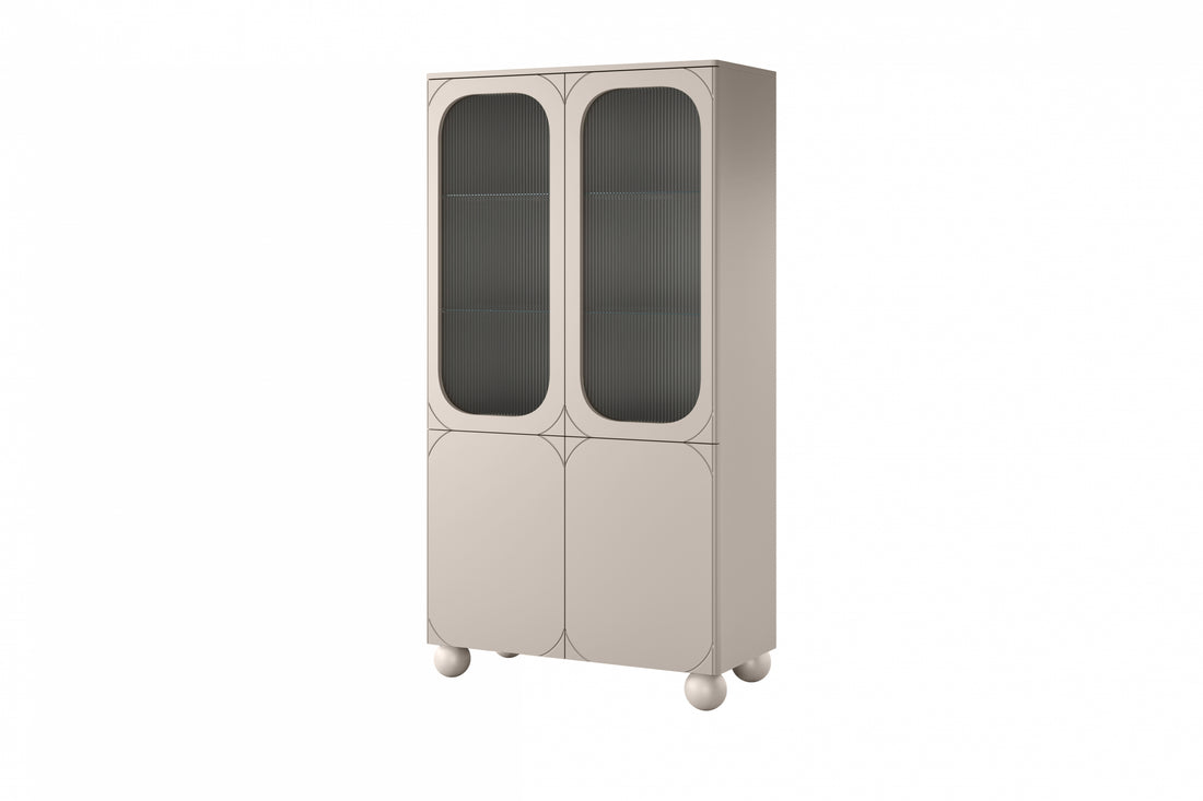 Malmi Vitrinekast 60 cm met matte gegroefde voorkant en gouden poten | Kleur: Kasjmier