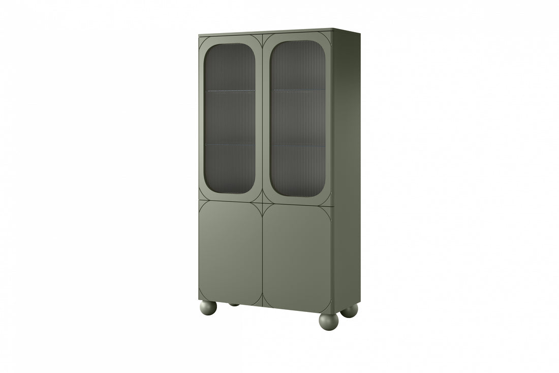 Sonatia II Vitrinekast met houten poten - Ruime opbergruimte voor woonkamer | Kleur: Olijf