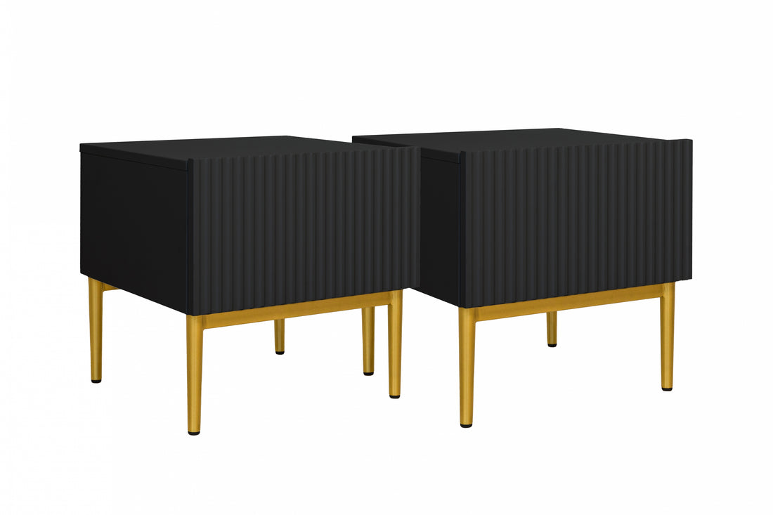 Nicole nachtkastjeset 2-delig – Matzwart MDF met metalen poten | Kleur: Zwart | Maat: 46x45x45 cm