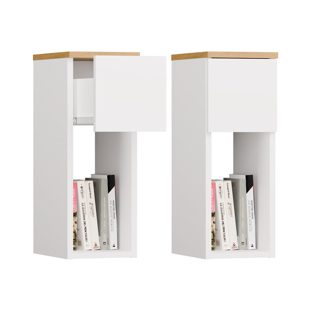Modern bedkastje GALAX 20 1S met lade en plank | Wit & Ambachtelijk Eiken | 20x30x55 cm