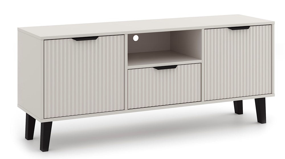 Scandi Slim TV-meubel met Lade en 2 Deuren - Ruime Opbergruimte | Kleur: Kasjmier Beige | 140x58x39