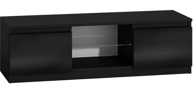 Moderne TV-kast Malwa 140 met glazen plank - Hoogglans UV-bestendig | Kleur: Glanzend Zwart