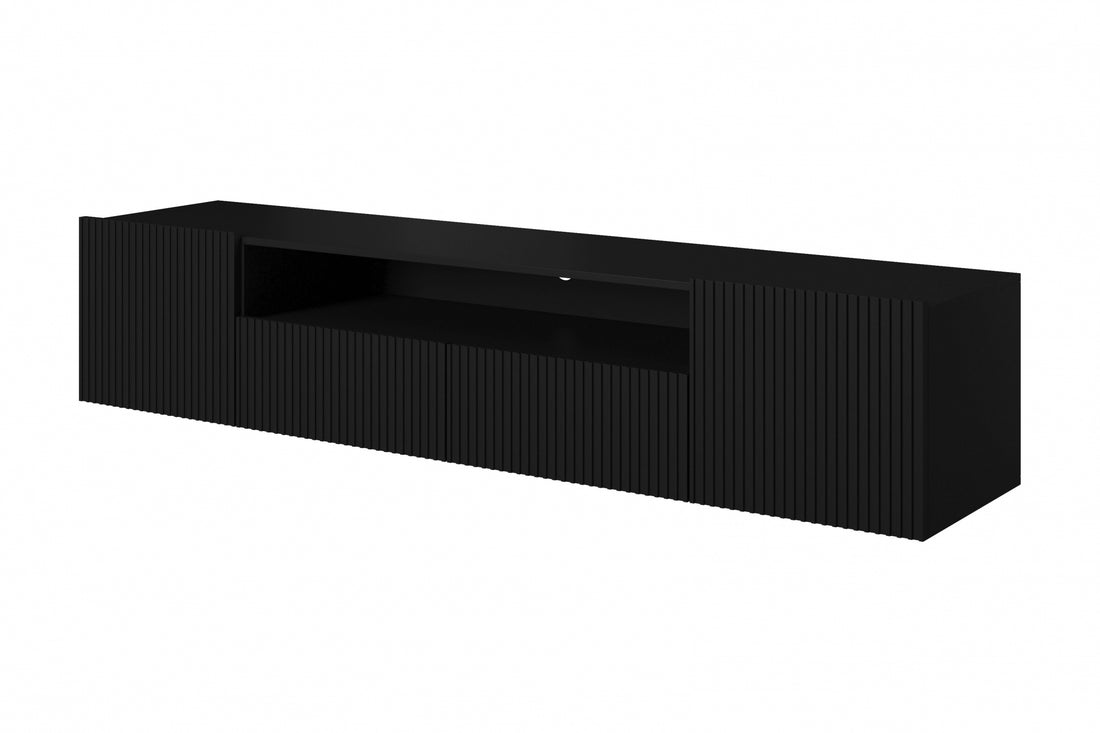 Hangend tv-meubel Nicole 200 cm met lades en uitsparing | Kleur: Zwart / Matzwart