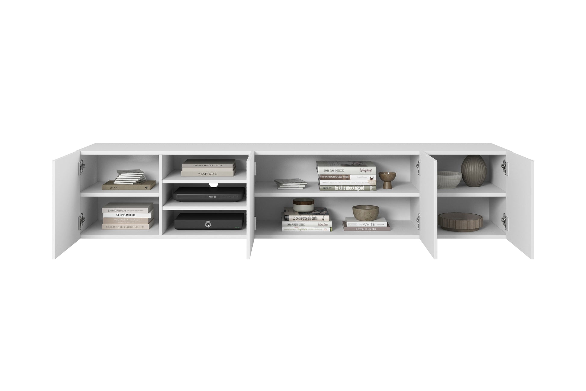 Asha TV-meubel 200 cm Hangend - Mat Wit, Gegroefde Voorkant | Kleur: Mat Wit | Maat: 200x40x40 cm