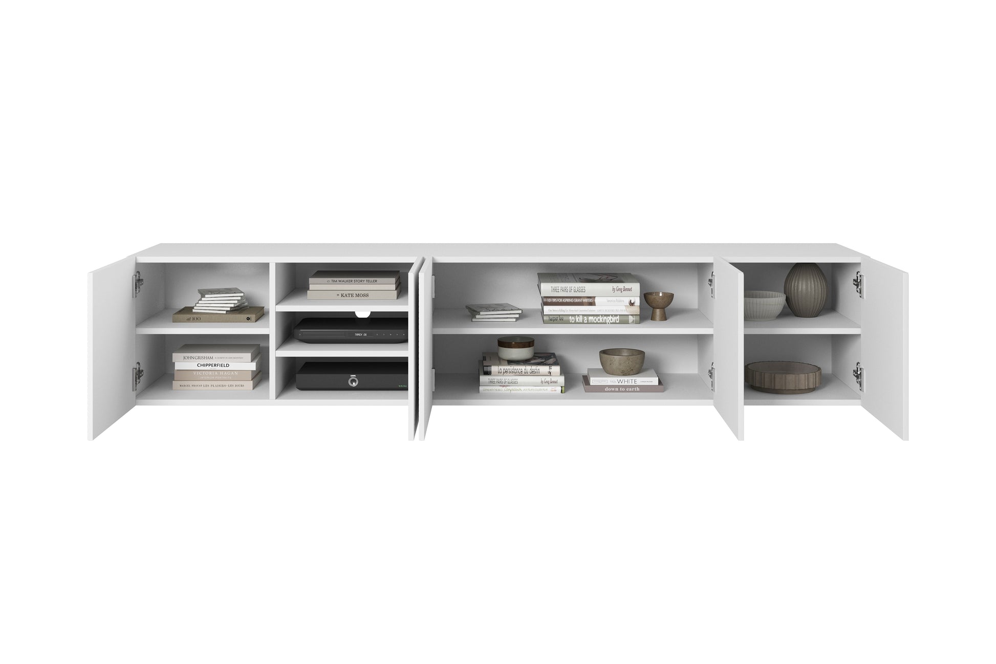 Asha TV-meubel 200 cm Hangend met Gegroefd Front - Mat Wit | Kleur: Wit Mat | Maat: 200x40x40 cm