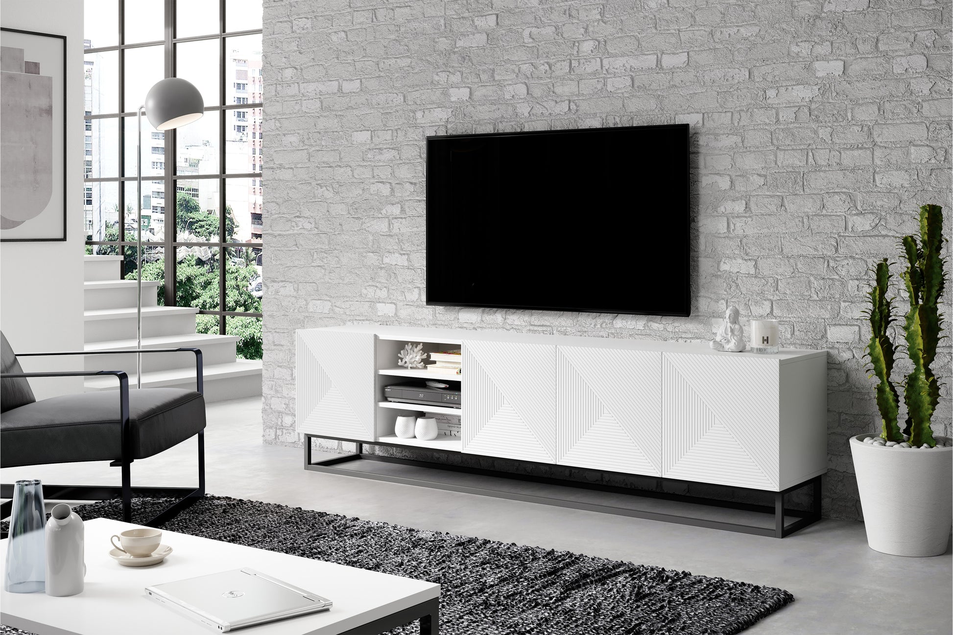 Asha TV-meubel met uitsparing en metalen frame, 200 cm – mat wit