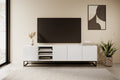 Asha TV-meubel met metalen frame en schuifdeuren - 200 cm | Kleur: Mat wit | Maat: 200x56x40 cm