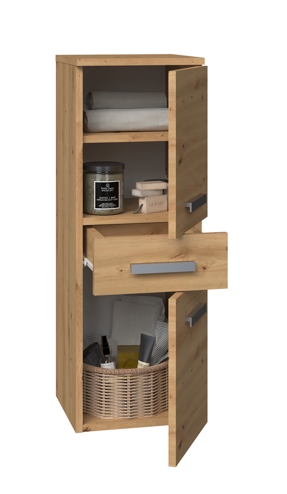 Badkamerkast NEL V DDS met lade en 2 deuren - Compacte opberger | Artisan Oak | 30x30x85 cm