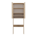 De Badkamerkast Pola biedt een ideale oplossing voor het opbergen van handdoeken, schoonmaakmiddelen en andere badkameraccessoires. Dankzij het efficiënte ontwerp maakt u optimaal gebruik van de ruimte boven uw wasmachine. Het meubelsysteem is eenvoudig te monteren dankzij de bijgevoegde handleiding en alle benodigdheden worden meegeleverd. U maakt het oppervlak gemakkelijk schoon met een zachte doek. Het stijlvolle uiterlijk en het gebruiksgemak zorgen ervoor dat uw badkamer netjes, georganiseerd en trendy blijft.