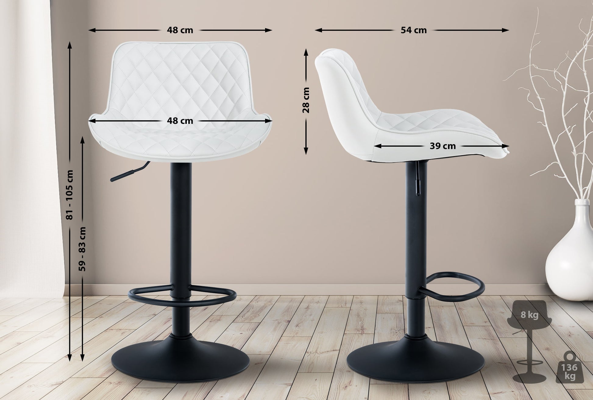 Gesamthöhe: 81 - 105 cm