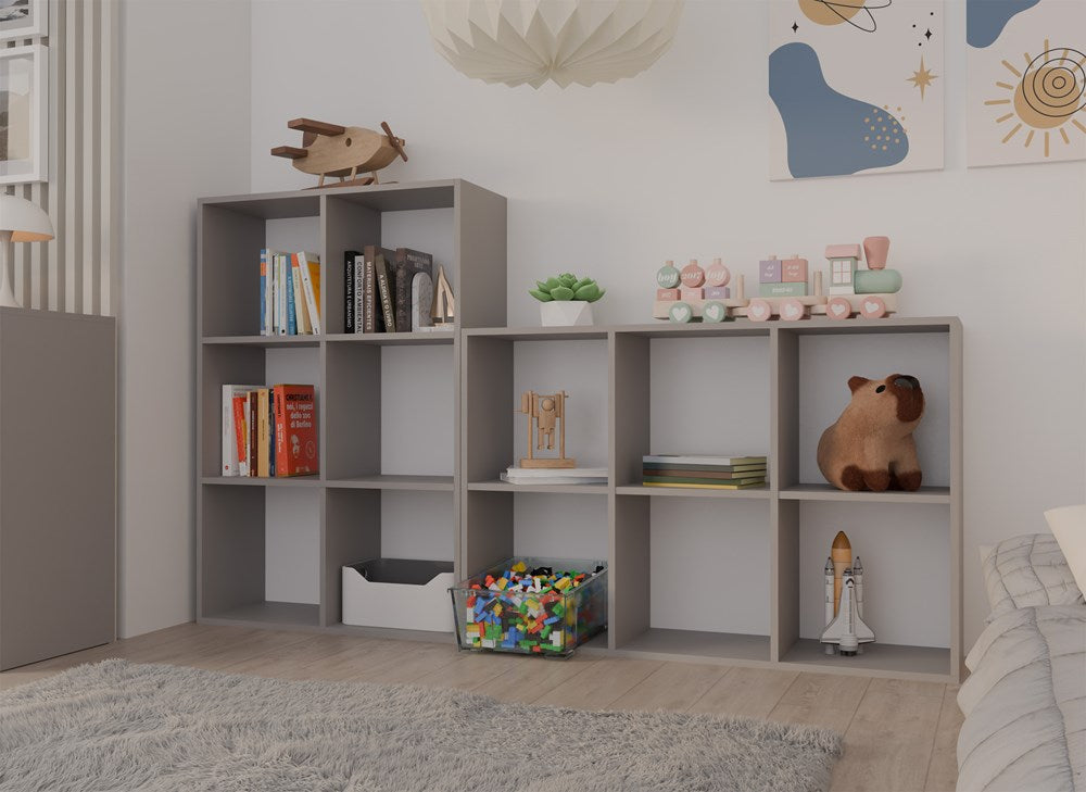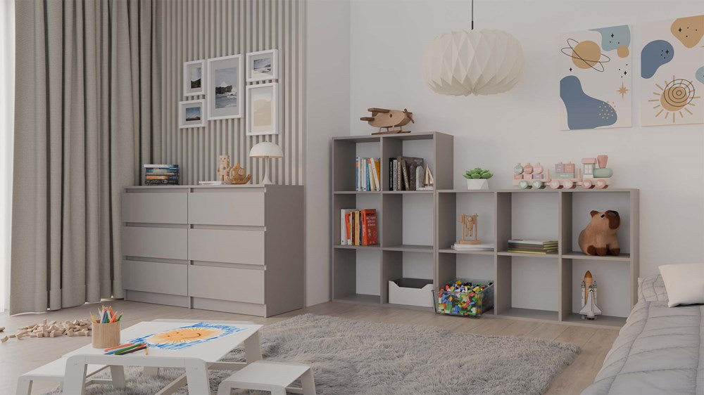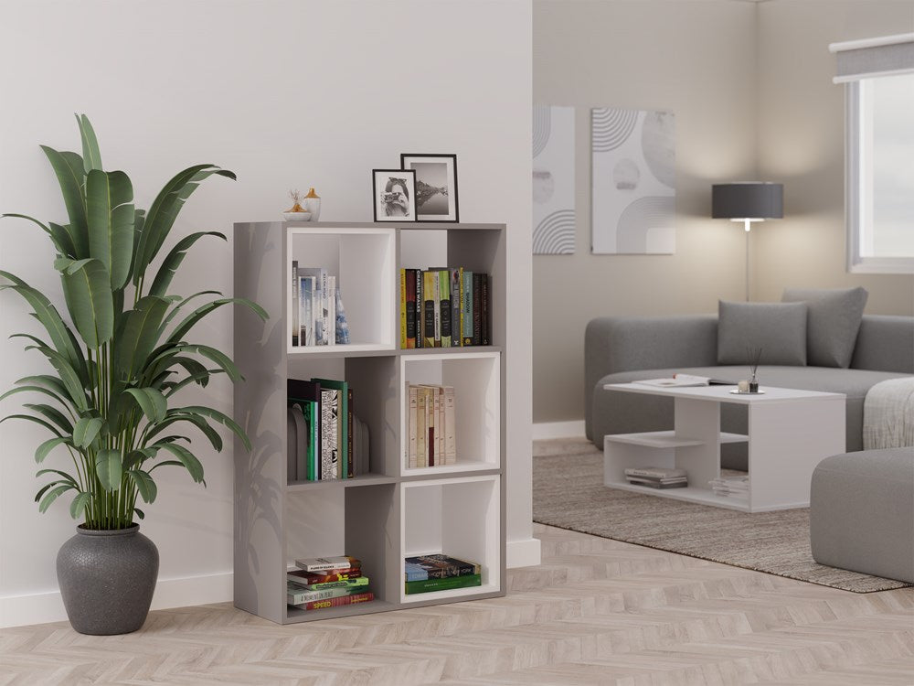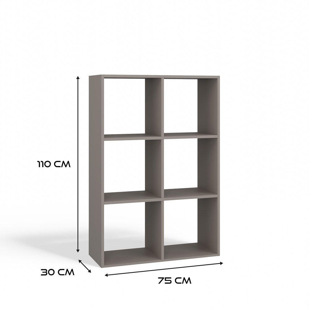 De MALAX 2x3 compartimentenplank in de kleur Klei combineert modern design met praktische functionaliteit. Dankzij de elegante grijze tint past deze open vakkenkast moeiteloos in elke woonkamer, tienerkamer, kantoor of speelruimte. Het minimalistische ontwerp maakt de plank niet alleen tot een efficiënte opbergoplossing voor boeken, speelgoed en documenten, maar verrijkt ook uw interieur als stijlvol meubelstuk. De hoogwaardige Poolse productie garandeert een duurzame afwerking en eenvoudige montage dankzij de duidelijke instructies en bijgeleverde accessoires.