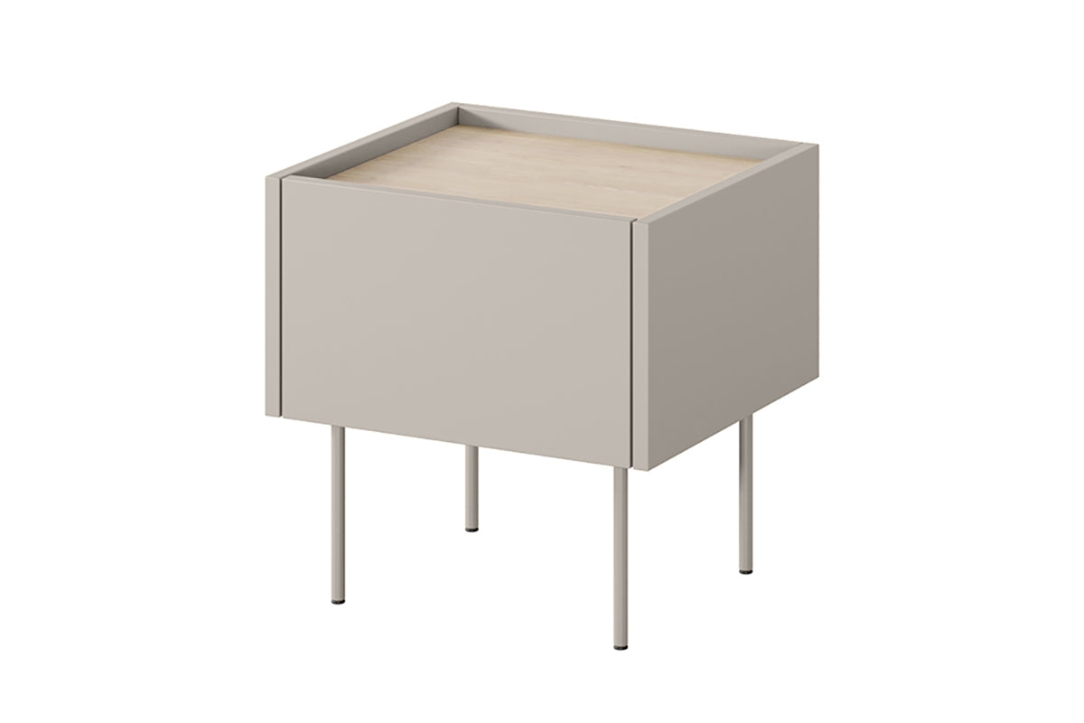 Desin nachtkastje 45 cm met lade en metalen poten - kasjmier / nagano eik