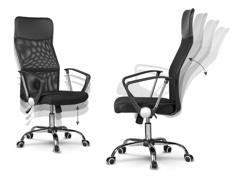 De Draaistoel NEMO in het zwart combineert een solide afwerking met een modern ontwerp, ideaal voor elke werkplek. Dankzij de pneumatische telescoop is de stoel eenvoudig in hoogte verstelbaar, terwijl de zitting naar achteren kan worden gekanteld en vergrendeld. De hoge rugleuning van micro mesh biedt extra comfort en optimale ventilatie tijdens lange werkdagen. Chrome-elementen en comfortabele armleuningen zorgen voor een luxe uitstraling. De stoel wordt geleverd met plastic wielen, maar biedt de mogelijkheid tot het aanschaffen van rubberen wielen voor extra vloerbescherming. Eenvoudige montage maakt deze bureaustoel extra praktisch in gebruik.