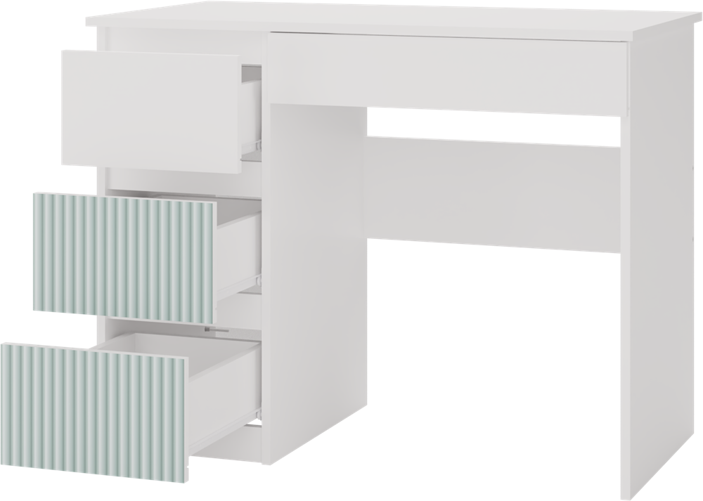 Op zoek naar een modern en praktisch bureau voor de tiener- of kinderkamer? Het MIJAS ARTESO bureau combineert een stijlvol ontwerp met extreem veel opbergruimte dankzij de 4 lades, waarvan 2 met een uniek muntpatroon. Het meubel is vervaardigd uit duurzame gelamineerde spaanplaat en voorzien van greeploze fronten en gladde zijkanten. Dankzij de verticale patronen en frisse kleuren past het bureau perfect in ieder eigentijds interieur. Eenvoudige montage, hoge kwaliteit en een comfortabel werkblad maken dit tot dé ideale plek voor huiswerk of creatieve projecten.