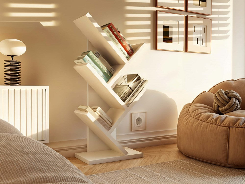 Grappige Mini – Moderne Geometrische Boekenkast, Mat Wit
