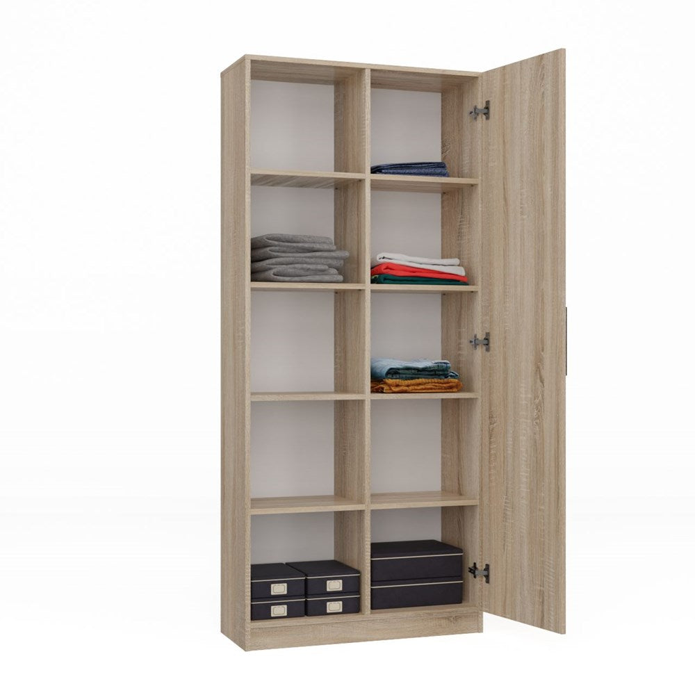 Ontdek de stijlvolle en praktische RD-80 halfopen boekenkast in de kleur Sonoma Eiken. Deze ruime kast biedt tot 10 handige planken, waarvan een deel slim verborgen achter een deur zit voor extra opbergruimte. Dankzij het minimalistische ontwerp en de lichte, eenvoudige vorm past deze kast perfect in iedere woonkamer, kantoorruimte of slaapkamer. De boekenkast is vervaardigd uit hoogwaardige, 16 mm dikke gelamineerde spaanplaat en straalt moderne elegantie uit. Een ideaal meubelstuk voor liefhebbers van eigentijds interieur en functionaliteit.