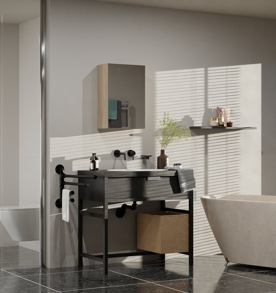 Het pakket bevat het badkamerkastje voor zelfmontage, een montagehandleiding en alle benodigde bevestigingsmaterialen. Houd rekening met lichte kleurvariaties door scherminstellingen en lichtomstandigheden.
