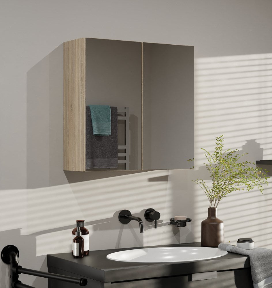 Hangend Badkamerkastje POLA 2DL met Spiegeldeuren - Compacte Opbergruimte | Sonoma Eiken | 60x60x22
