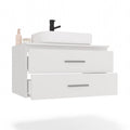 De NEL80 hangende badkamerkast is een stijlvol en functioneel meubelstuk, ideaal voor moderne badkamers van elk formaat. Het meubel is voorzien van twee ruime, volledig diepe lades zonder uitsparingen voor sifons, waardoor je maximale opbergruimte hebt voor handdoeken, cosmetica of andere accessoires. Dankzij het strakke, witte design en de gladde afwerking zonder overbodige gaten, past de kast perfect in minimalistische interieurs. NEL80 is ontworpen als onderkast voor een opzetwastafel, die je geheel naar eigen wens kunt kiezen voor een persoonlijke touch in jouw badkamer.