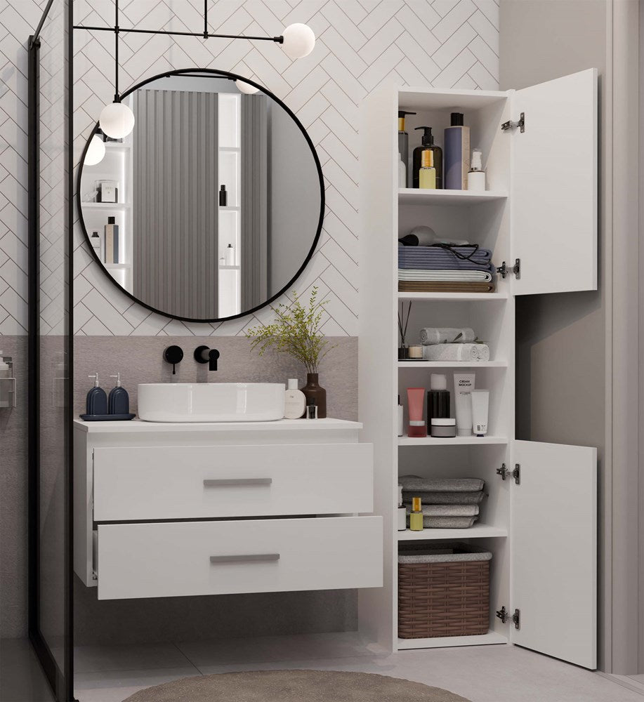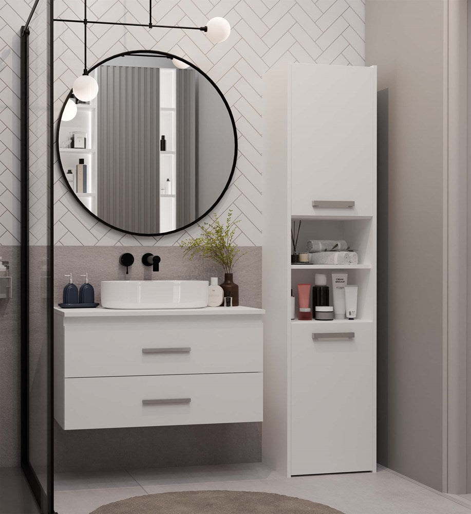 Hangende Badkamerkast NEL80 met 2 Lades – Wit