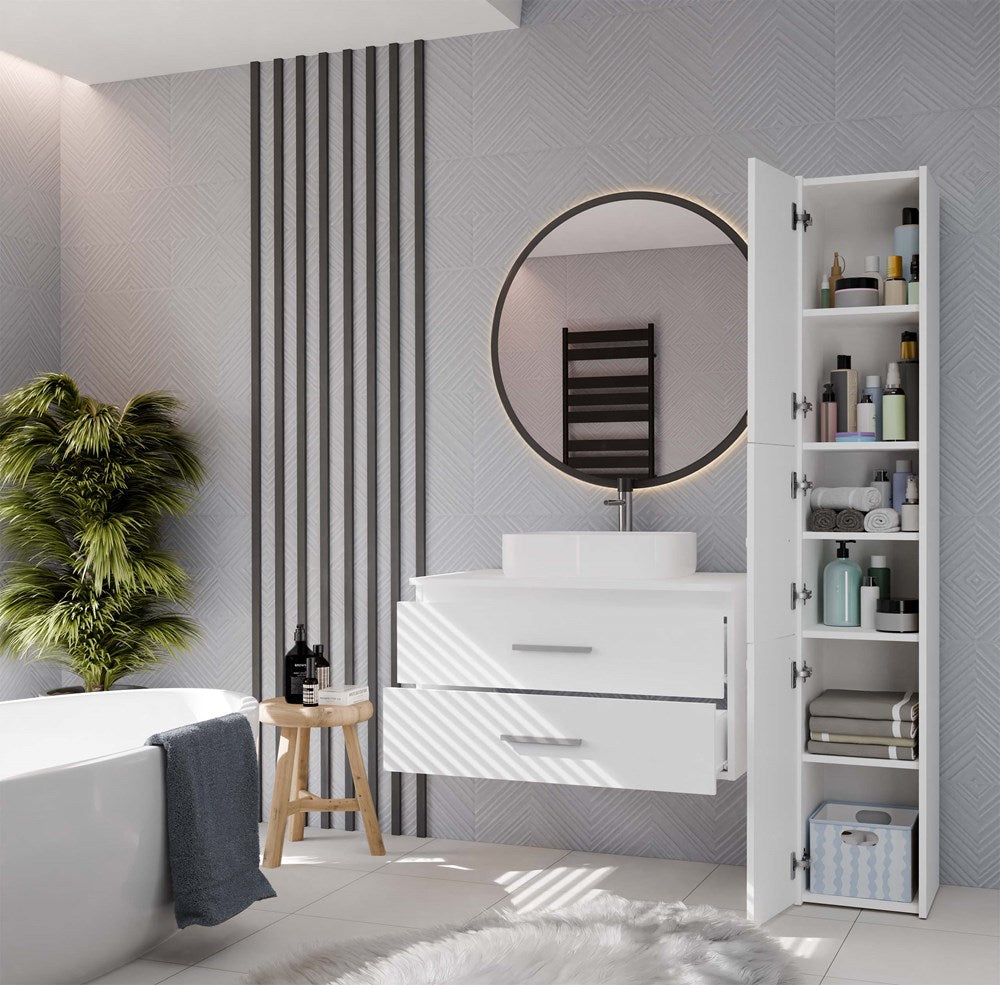 De grootste voordelen van de NEL80 badkamerkast zijn het ruimtebesparende hangende ontwerp en de flexibiliteit om zelf de hoogte van installatie te bepalen. De kast maximaliseert de opslagcapaciteit, terwijl de functionele lades zorgen voor eenvoudig en georganiseerd opbergen van al je badkamerbenodigdheden. Het duurzame materiaal is eenvoudig te onderhouden en bestand tegen vocht, ideaal voor dagelijks gebruik. NEL80 is de perfecte keuze voor wie design en functionaliteit wil combineren in een compacte, praktische oplossing zonder in te leveren op stijl.