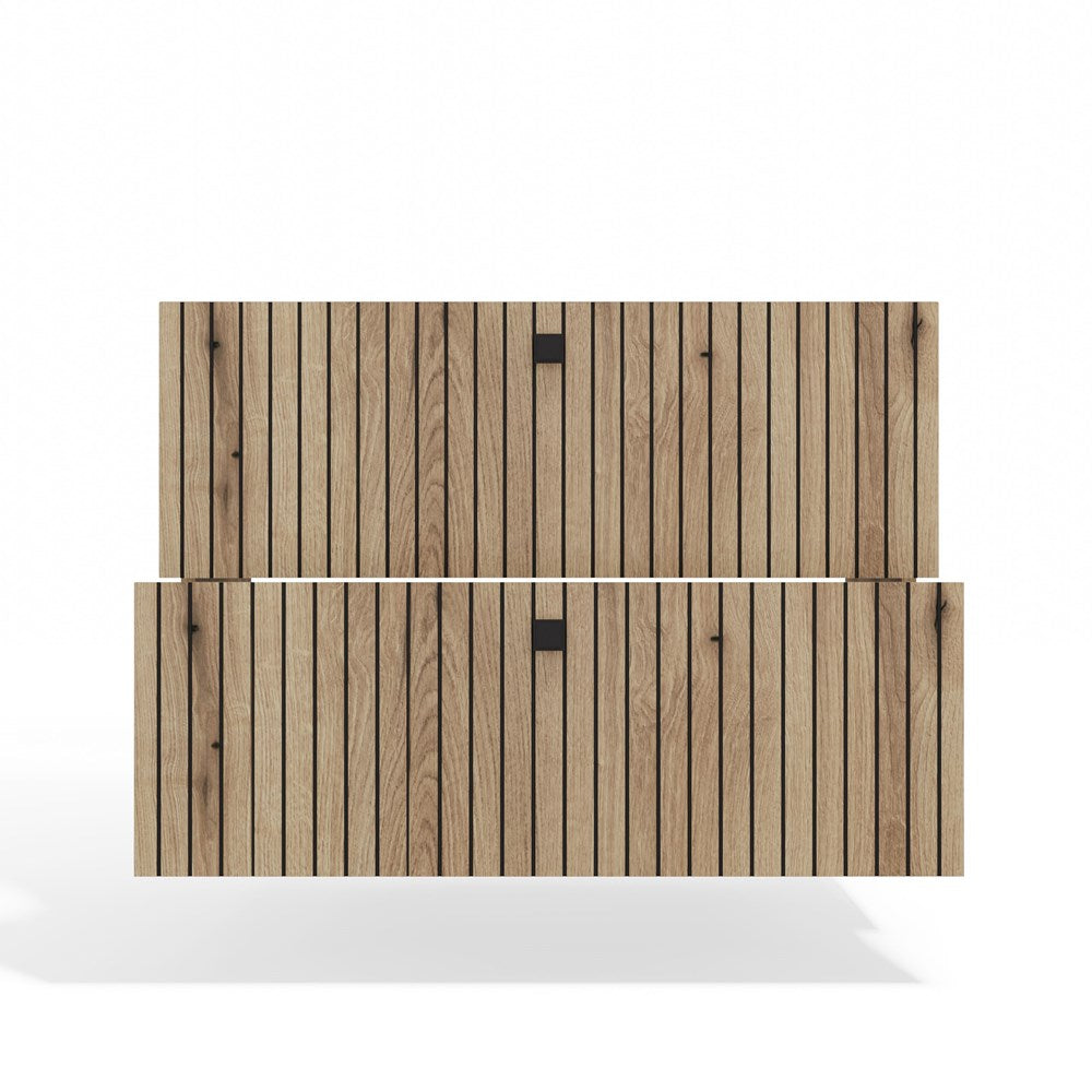 Hangende Badkamerkast TIGO 80 2S met 2 Lades – Evoke Eiken, Geribd Voorkant