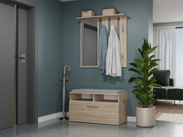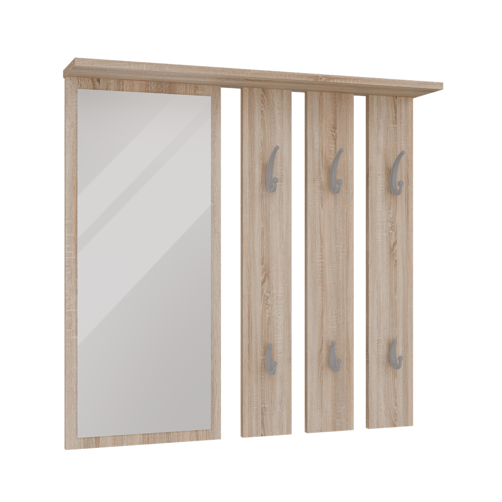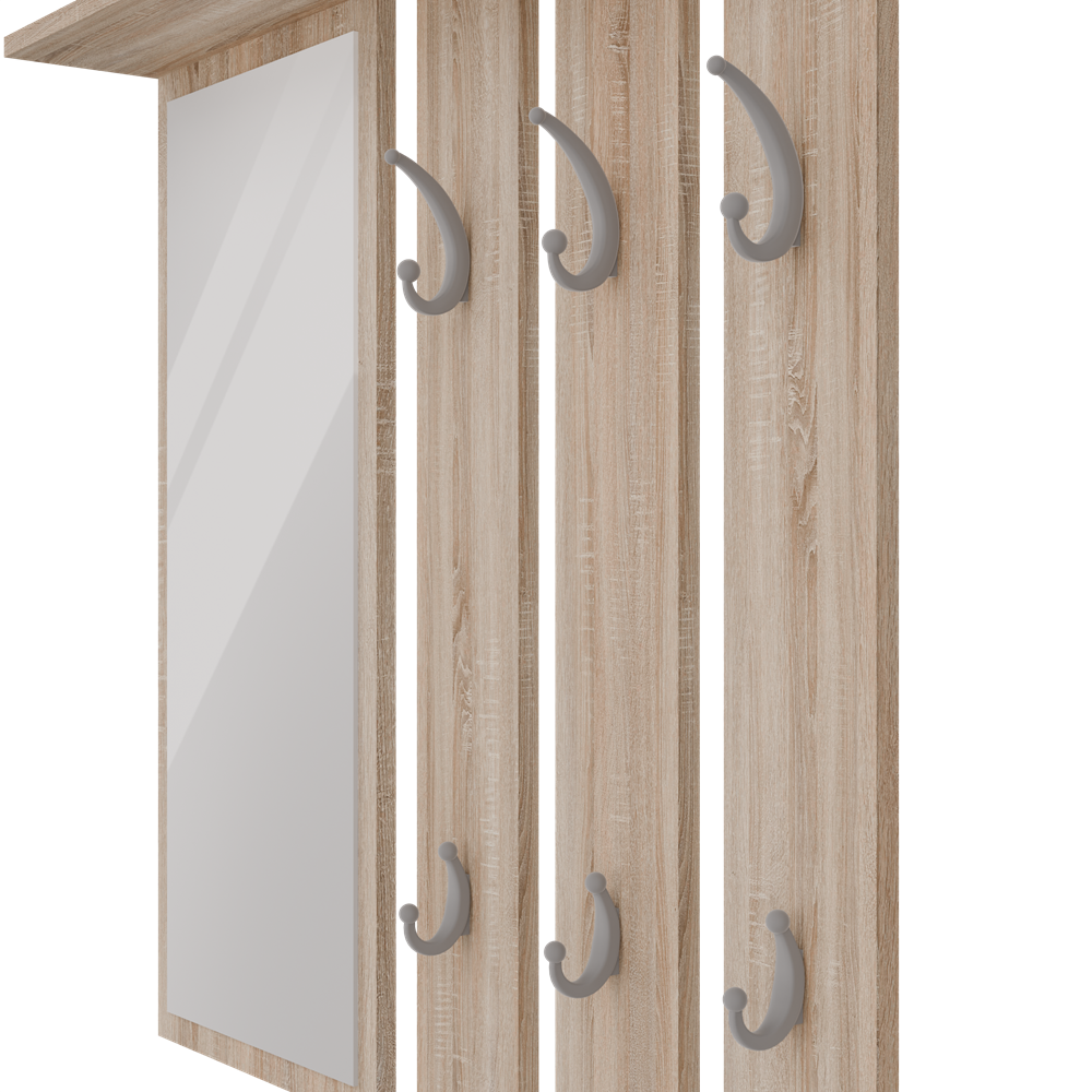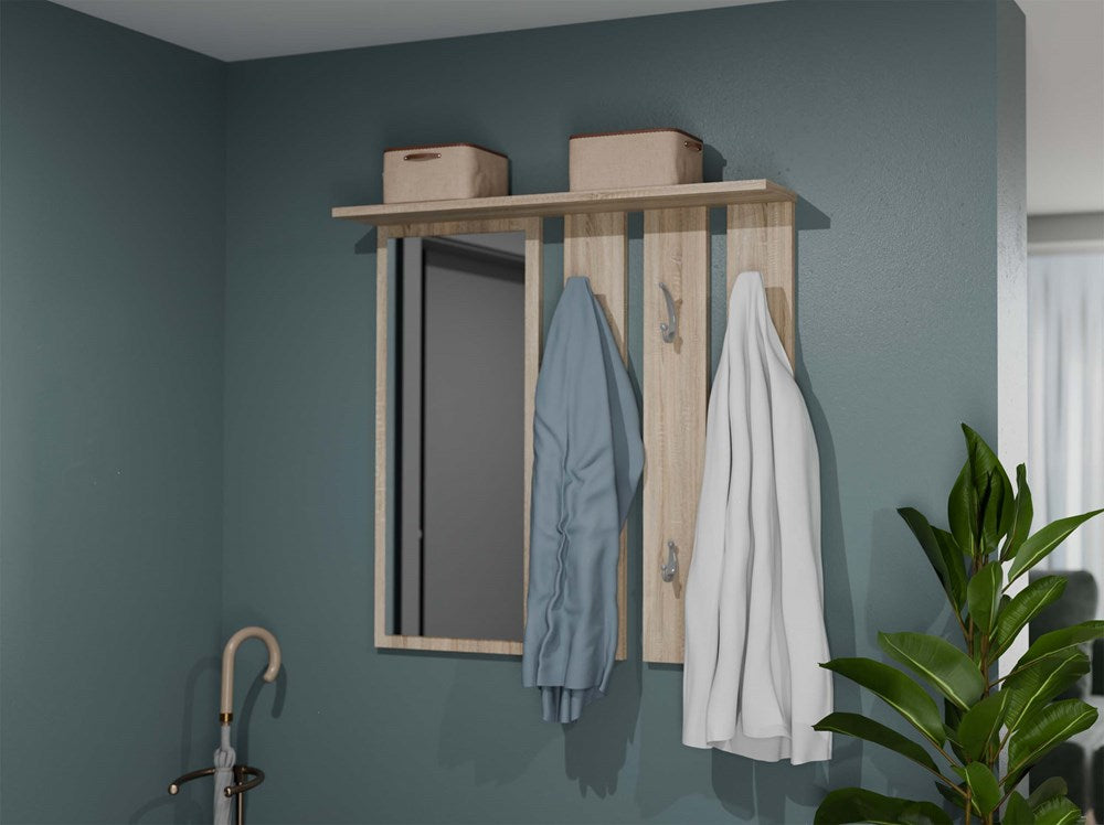 Hanger met Plank en Spiegel OPAAL - 6 Haken | Sonoma Eiken | 85x15x82 cm