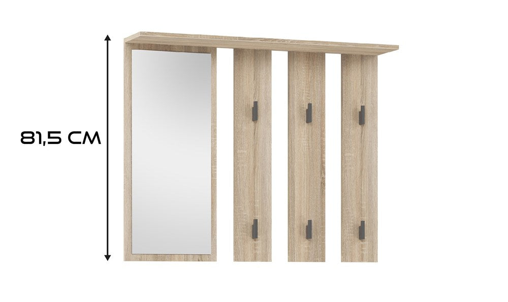 Hanger met Plank & Spiegel PARMA – 6 Haken, Groot Formaat | Sonoma Eiken | 100x15x81,5 cm