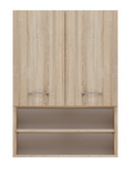 De POLA MINI DK hangkast in Sonoma eiken is dé praktische oplossing voor optimaal gebruik van de ruimte boven je wasmachine. Met twee open planken en twee deuren biedt deze moderne kast volop opbergruimte voor handdoeken, schoonmaakmiddelen en badkameraccessoires. Het minimalistische ontwerp en het nieuwe type beslag zorgen voor een strakke afwerking zonder zichtbare doppen aan de zijkanten. Gemaakt van stevig 16 mm gelamineerd karton door een Poolse fabrikant, past deze hangkast perfect in ieder interieur en is bijzonder geschikt voor kleine badkamers.
