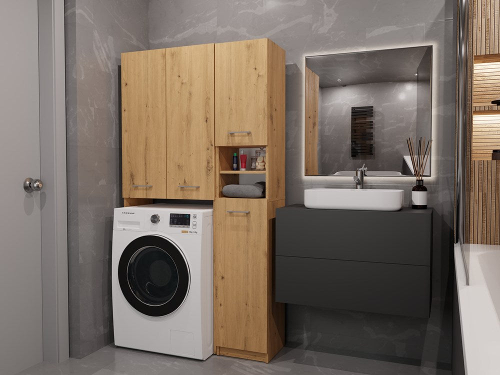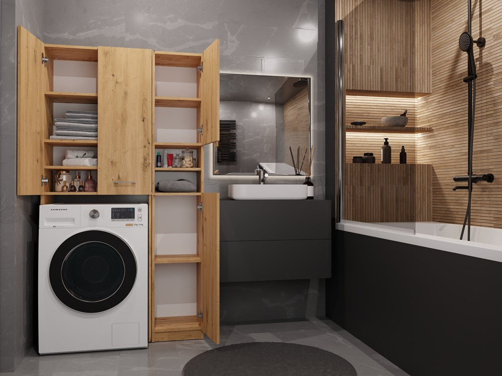 MARPOL DD badkamerset – ruimtebesparend & modern met wasmachinekast | Artisan eiken | 96x30x180 cm