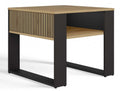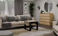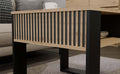 Geef uw woonkamer een eigentijdse uitstraling met de Moderne 2P Mini Slim salontafel. Dankzij het innovatieve ontwerp met gegroefde zijkanten imiteert deze salontafel latten en voegt uniek karakter toe aan elk interieur. De tafel is afgewerkt in stijlvolle artisan eiken en zwart tinten, wat zorgt voor een warme en moderne look. Het ruime tafelblad en de extra legplank bieden voldoende plaats voor decoratie of dagelijks gebruik, terwijl het krasbestendige gelamineerde oppervlak de duurzaamheid garandeert. Eenvoudige montage wordt mogelijk gemaakt door duidelijke instructies en meegeleverde accessoires.