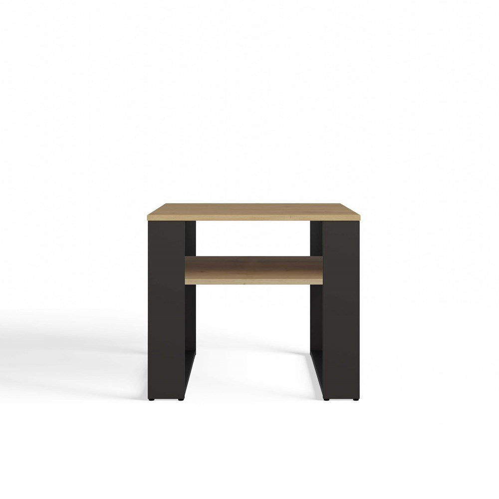 Moderne 2P Mini Slim Salontafel met Legplank – Artisan Eiken/Zwart | 58x58x50 cm
