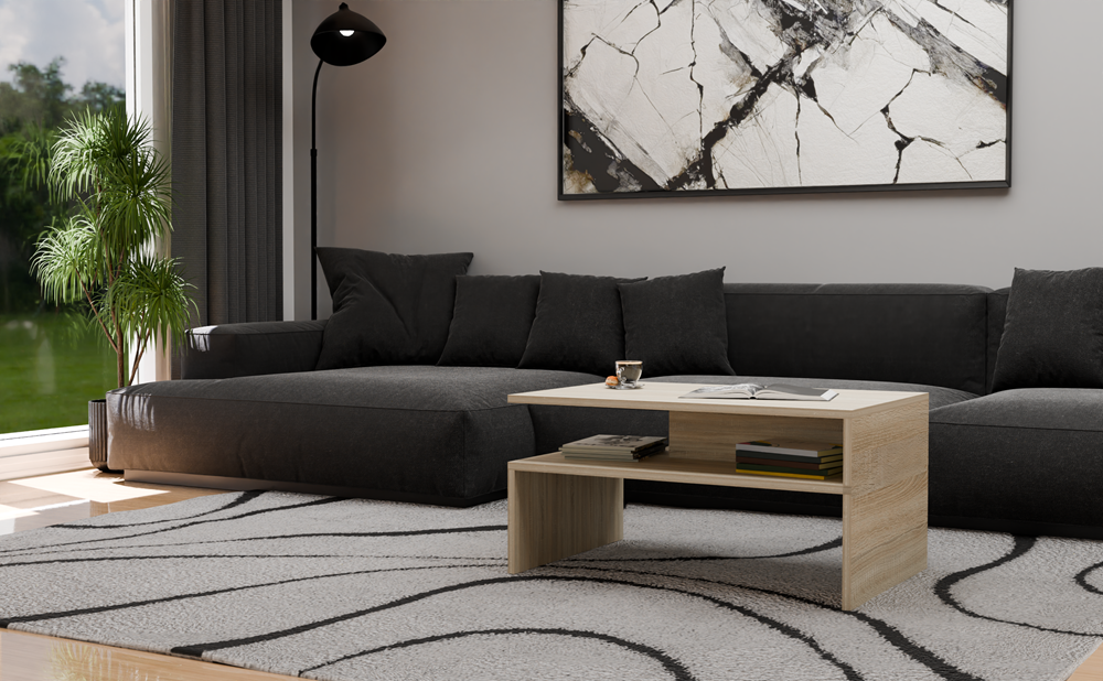 Profiteer van het functionele design van de Boston koffietafel, die niet alleen geschikt is voor de woonkamer, maar ook ideaal voor gebruik in studieruimtes, kantoren of ontvangstruimten. De eenvoudige constructie maakt de tafel makkelijk schoon te houden, waardoor deze jarenlang zijn elegante uitstraling behoudt. Met een praktische hoogte van 45 cm is deze tafel perfect als centrale plek voor koffie, decoratie of tijdschriften. Dankzij het montagevriendelijke pakket en de duidelijke handleiding is de koffietafel eenvoudig zelf in elkaar te zetten.