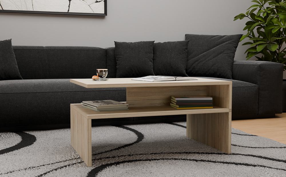Moderne koffietafel Boston - Gelamineerd karton | Sonoma Eiken | 90x60x45 cm
