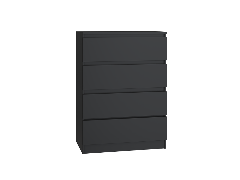 Deze ruime ladekast is ideaal voor slaapkamer, woonkamer of kinderkamer en biedt volop opbergruimte voor uw kleding, accessoires of speelgoed. De universele zwarte kleur past moeiteloos bij diverse inrichtingsstijlen en voegt een vleugje klasse toe aan elke ruimte. Dankzij de solide materialen en rolladegeleiders geniet u van veilig en comfortabel gebruik op de lange termijn. Het meubel heeft een onderhoudsvriendelijk oppervlak, eenvoudig te reinigen met een zachte doek. Kies voor de MALWA M4 voor een combinatie van eenvoud, elegantie en praktische bruikbaarheid.