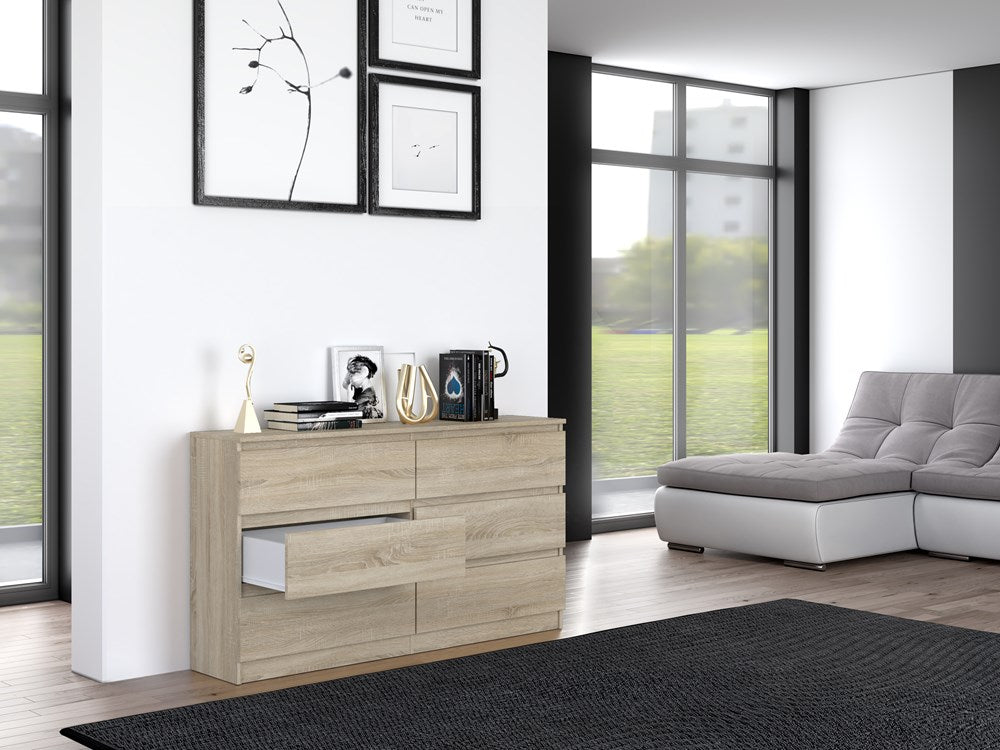 Moderne ladekast MALWA M6 138x40x75 cm - Ruime, greeploze lades | Kleur: Sonoma Eiken
